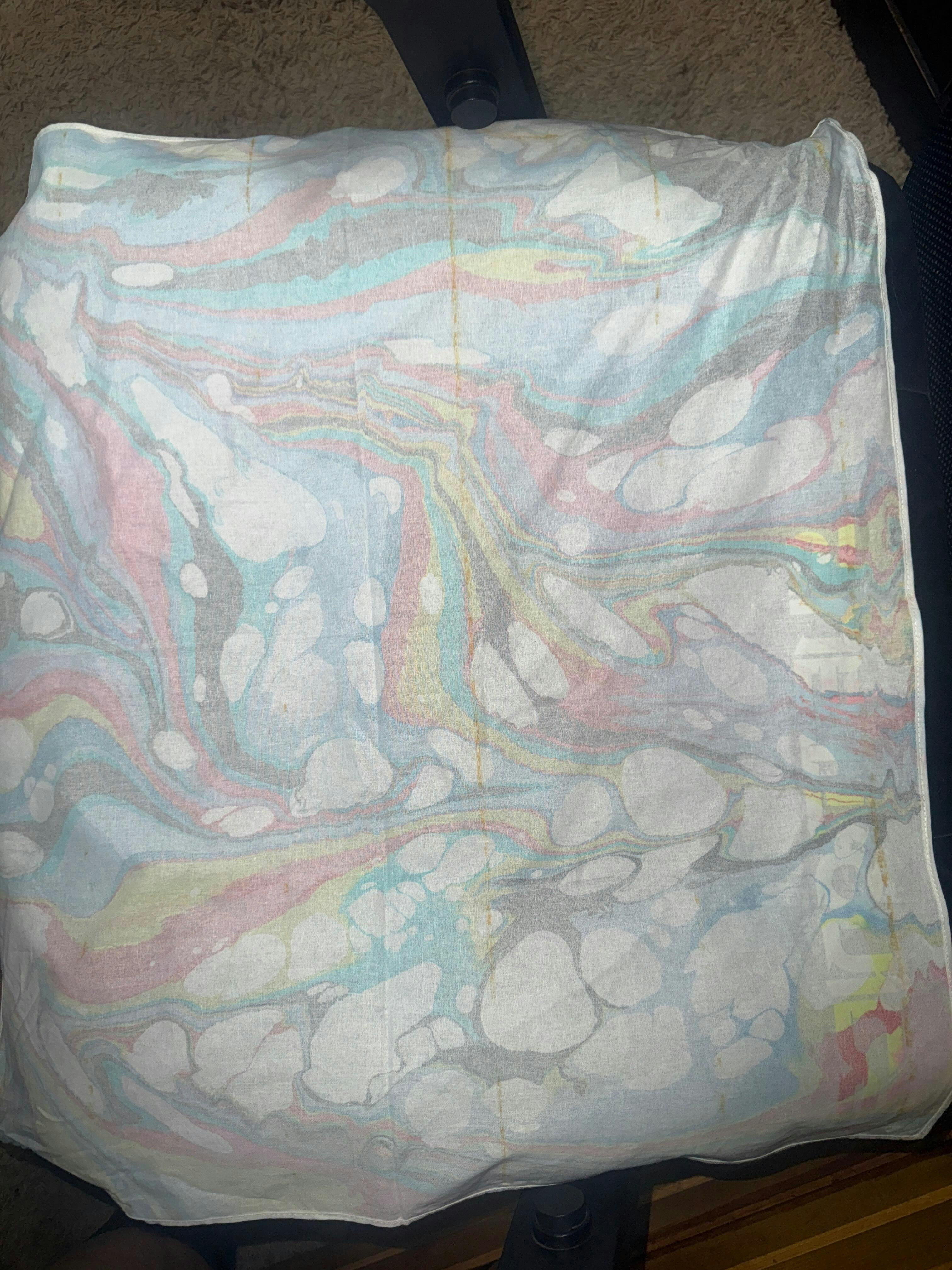 Hydro-dipping on fabric is a process where the material is submerged in a special bath containing floating marbling inks. Thanks to our exclusive paint formula, each bandana absorbs a one-of-a-kind pattern that can never be exactly replicated. Once dried, the fabric is ready to be worn and showcase its spectacular design.