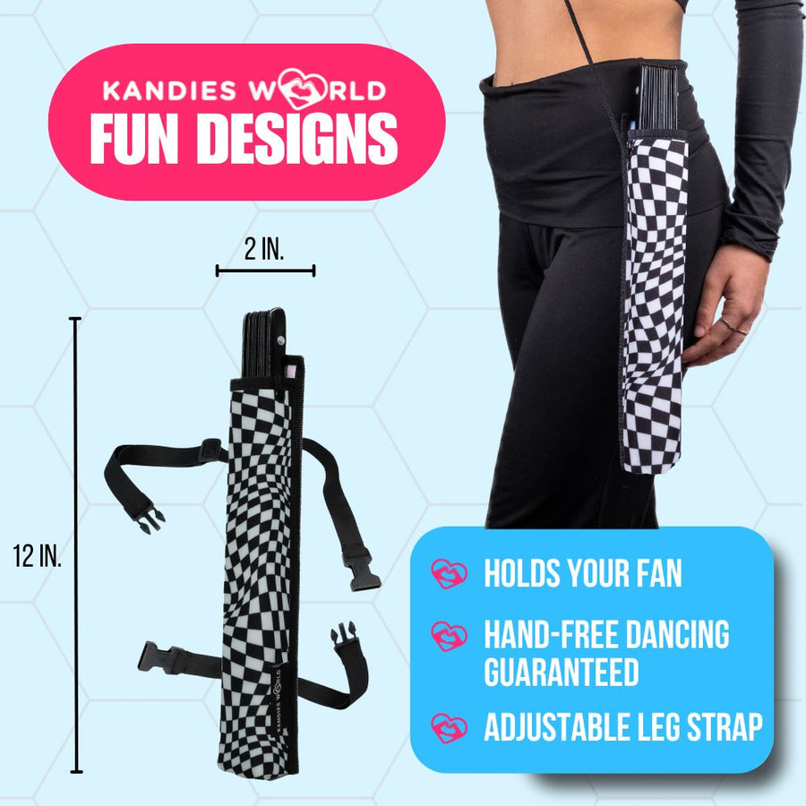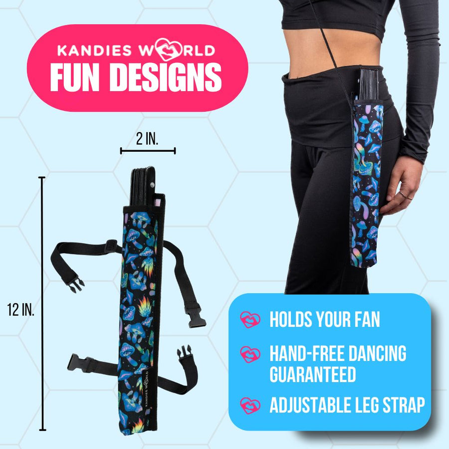 Our holsters are universal and designed to fit standard 13-inch rave folding fans, including both bamboo and plastic models.