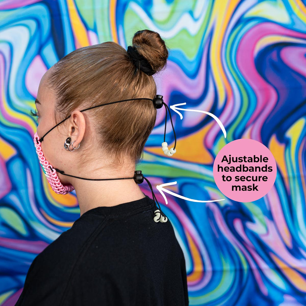 Stand out at festivals with our handmade Surgical Kandi Face Mask! Designed entirely with colorful beads and featuring an adjustable headband for secure, comfortable wear. This unique mask is perfect for raves, festivals, costume parties, and anywhere you want to make a statement.